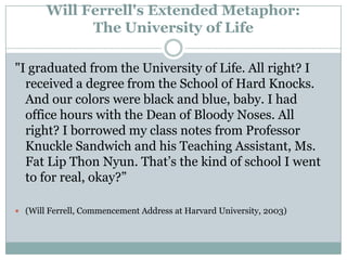 He compares everyone to Gatsby moving forward with their arms outstretched like Gatsby on the shore like boats beating upstream against the current looking to the future but searching for a lost past. Changed his name to Jay Gatsby at age seventeen. Metaphors and Similes.