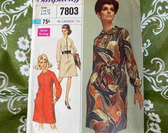 Vintage 1968 Simplicity 7803 Pattern Size 12 Bust 34 Etsy